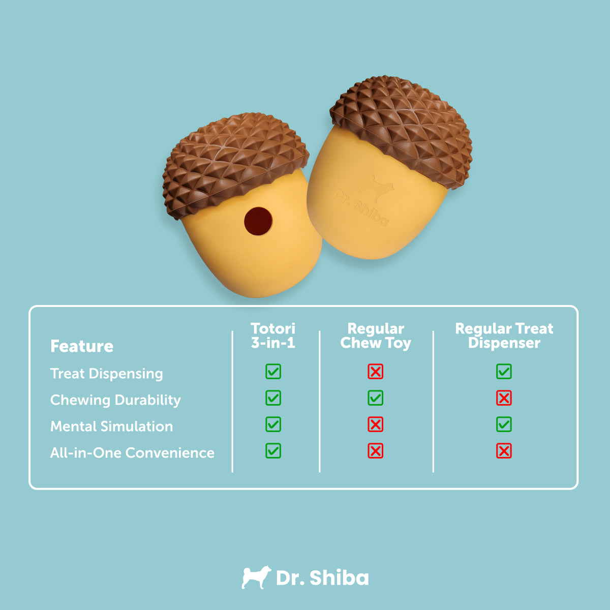 Shaped like a cute acorn, Totori is designed to dispense treats as your dog chews and plays. Made from ultra-durable materials, it stands up to even the most enthusiastic chewers. Perfect for keeping your dog entertained and their teeth strong!
